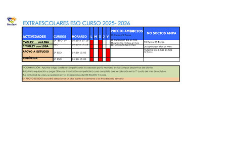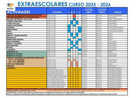 - Actividades extraescolares que ofrece la AMPA con horario de 16:00 a 17:00